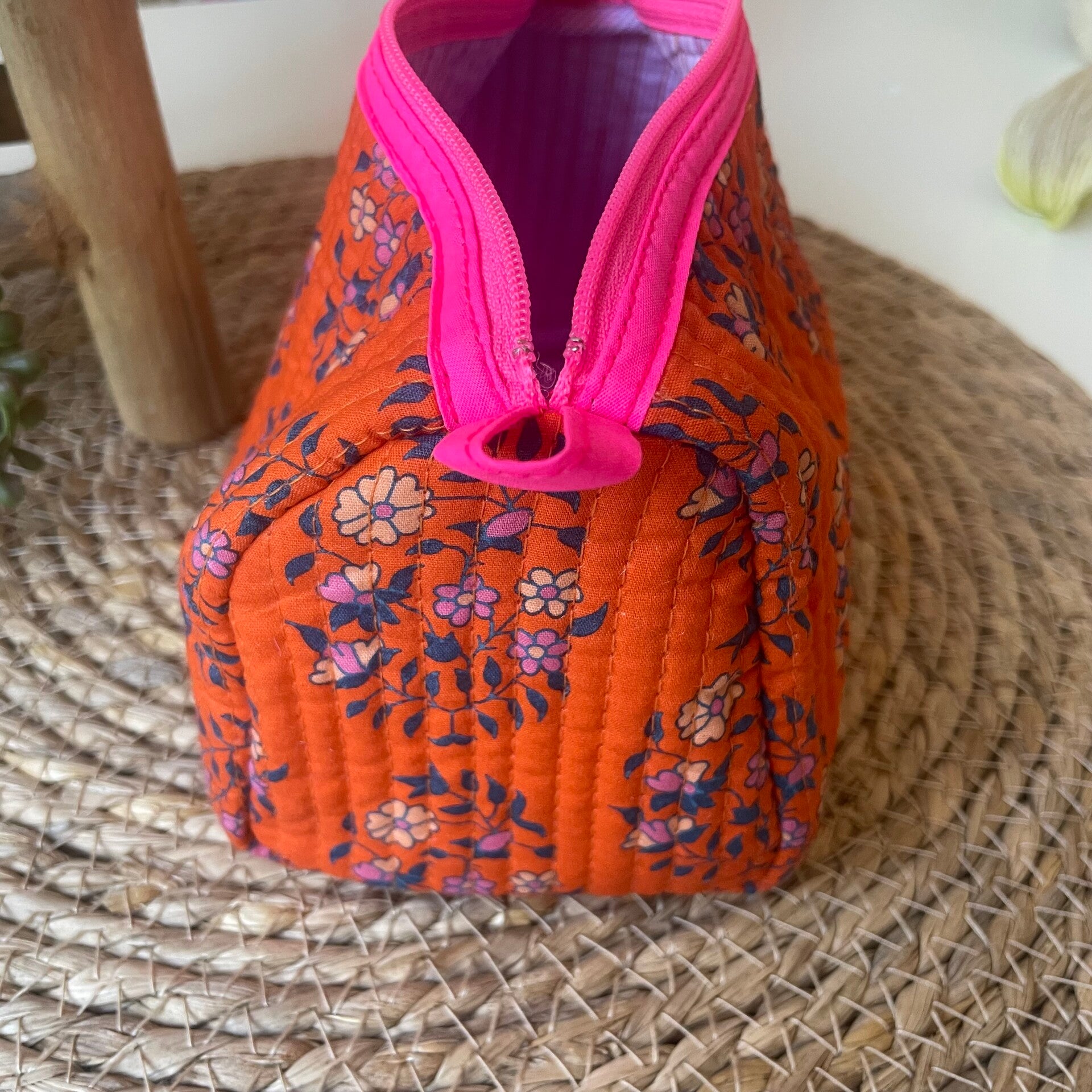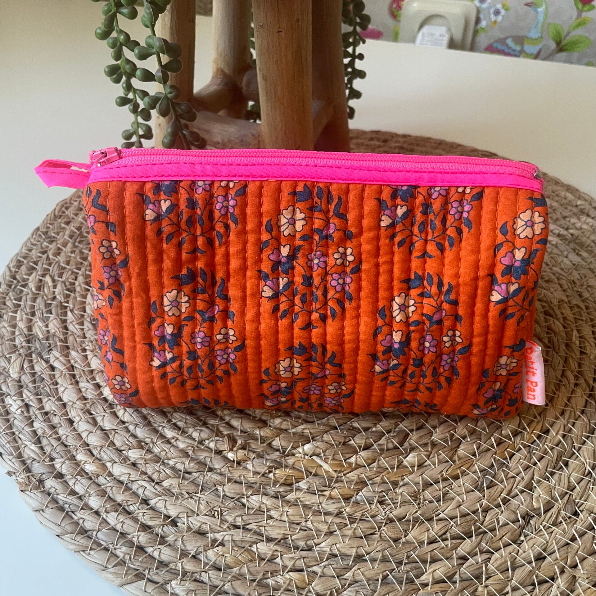 Leuke doorgestikte katoenen (Oeko Tex gecertificeerd katoen) etui met rits.