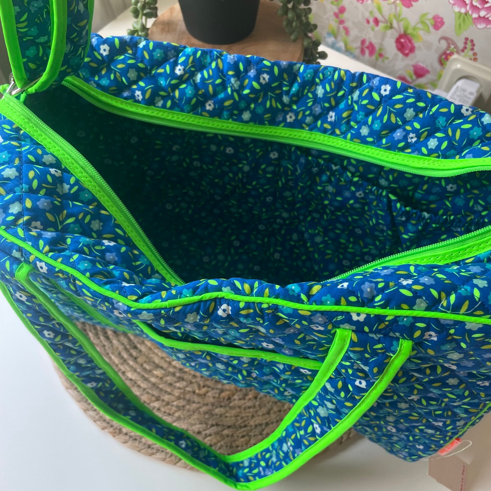 Waanzinnig mooie doorgestikte katoenen (Oeko Tex gecertificeerd katoen) tas met rits en schouderband.